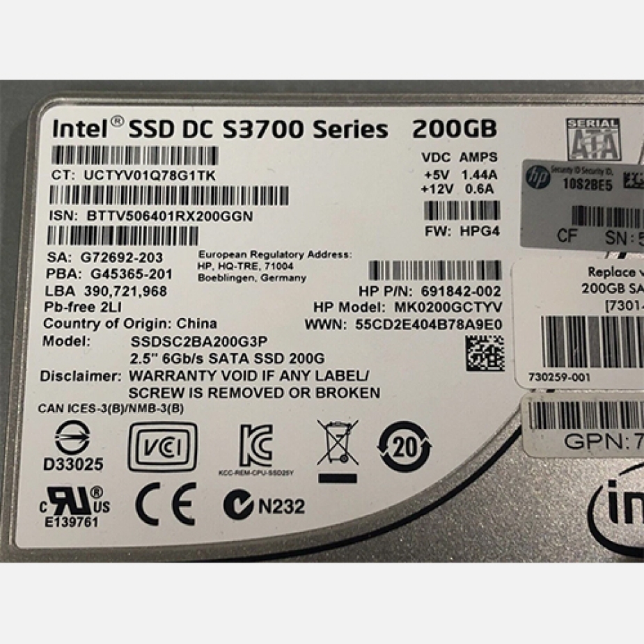 Disque SSD Intel 200GB DC S3700 2,5" pour HP ProLiant G8/G9/G10